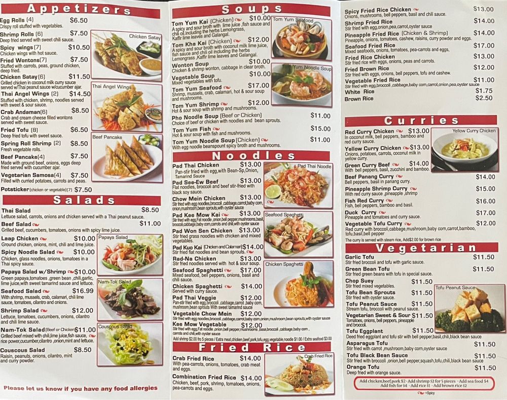 The highlights of their menu include classic dishes like Pad Thai, Tom Yum Soup, and mouthwatering Beef Salad. Customers rave about the generous portions and the rich flavors that make for a satisfying meal, whether dining in or enjoying takeout.